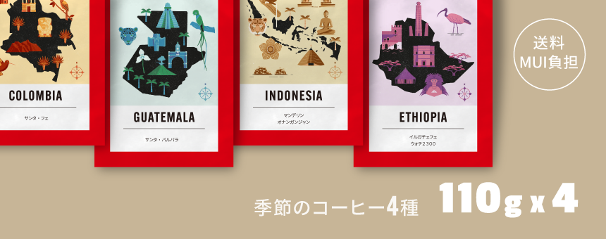 『ネコポスなら送料当店負担』季節のコーヒー110g×4種セット(バルバラ/サンタフェ/オナンガンジャン/ウォテ)